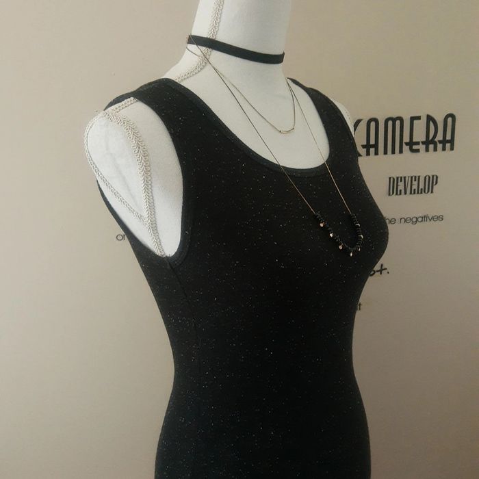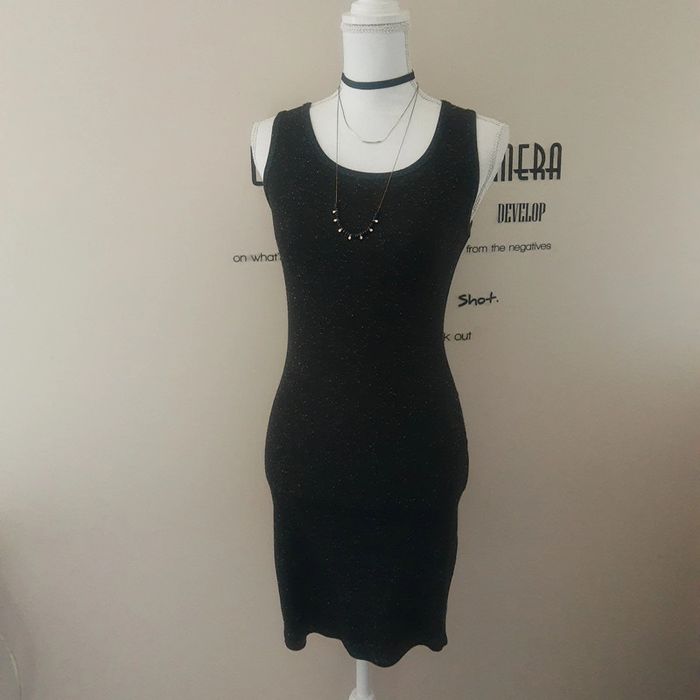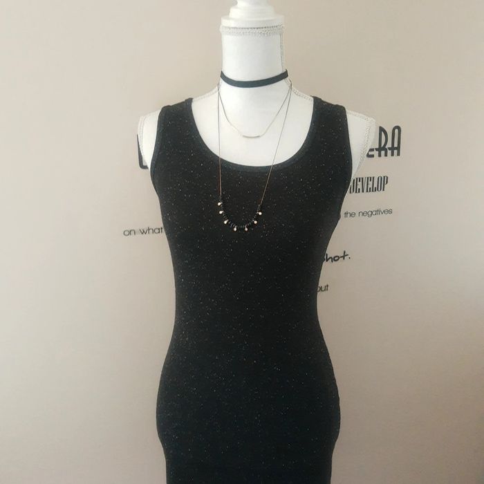 Robe t-shirt mi longue sans manches noire pailletée blanc Forever 21 - photo numéro 9