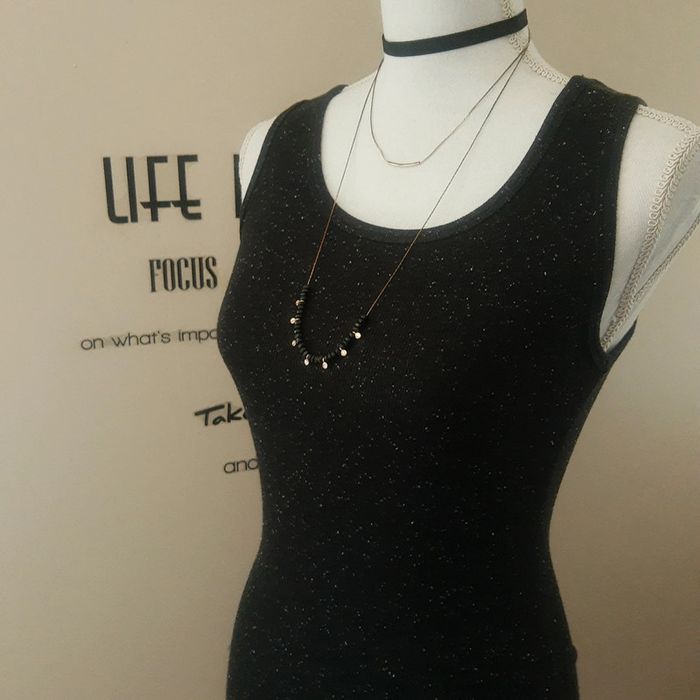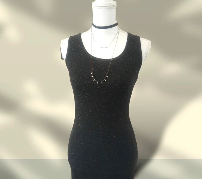 Robe t-shirt mi longue sans manches noire pailletée blanc Forever 21 - photo numéro 2