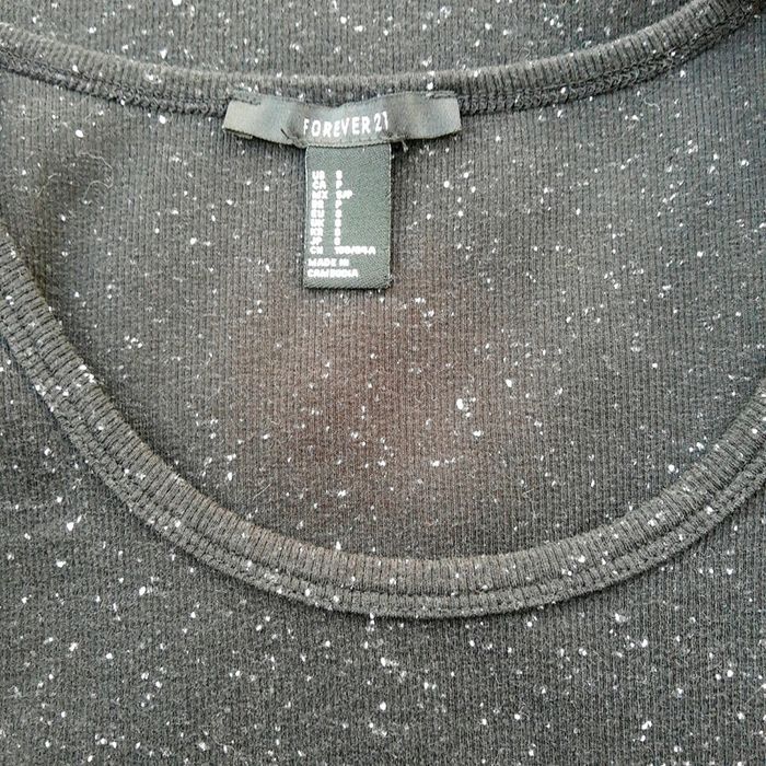 Robe t-shirt mi longue sans manches noire pailletée blanc Forever 21 - photo numéro 5