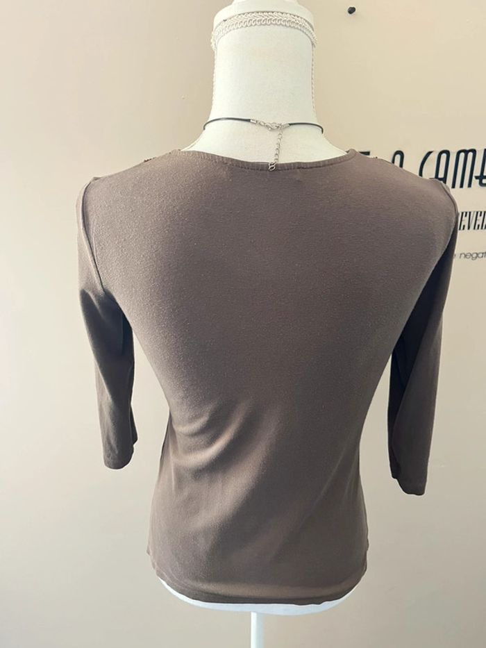 Blouse Caroll marron viscose et coton brodé motif fleurs - photo numéro 3