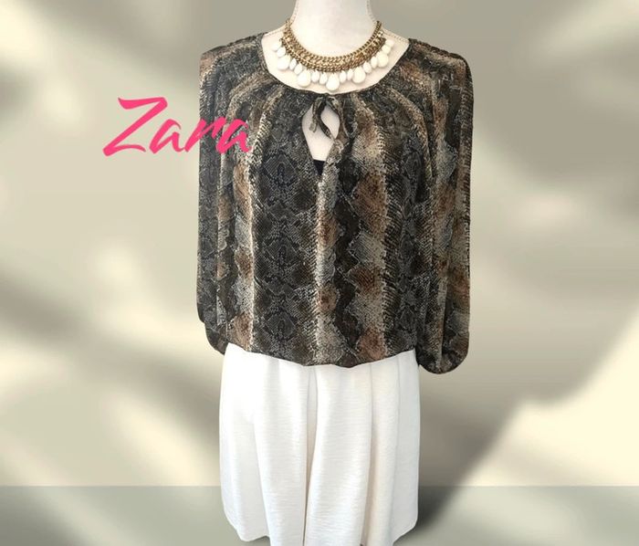 Blouse manches longues voile fluide imprimé animalier Zara - photo numéro 1