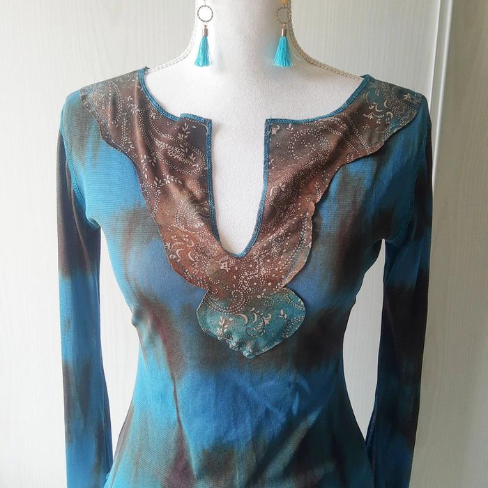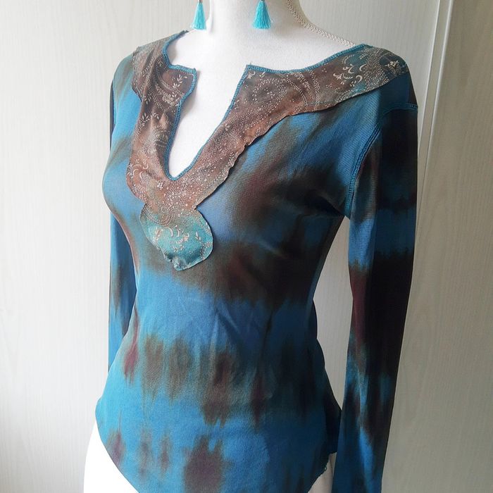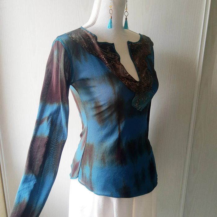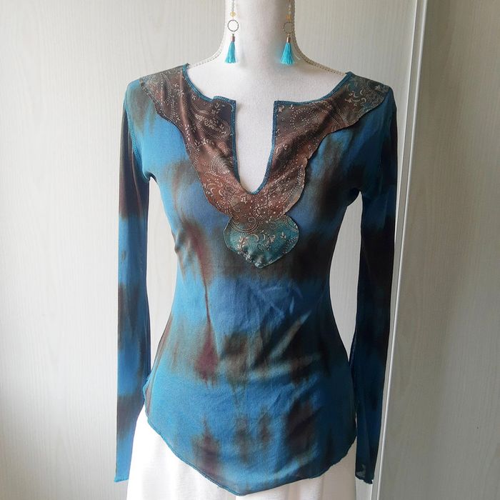 Magnifique blouse chic près du corps en voile imprimé tie and die bleu vert canard, turquoise, marron, doré.. Très joli plastron devant oriental Manches longues plus évasées en bas type pagodes ou trompettes ouvertes Pas de taille indiquée, aucune étiquette intérieure mais porté ici par mon mannequin en 38 40 sans difficultés. Envoi rapide et soigné 👍. Idéal pour une tenue de soirée chic, cérémonie, mariage, fête etc... Thème oriental ou pas 😉 Mes autres articles : chics #cloclodalochic Taille unique #cloclodalotu en M #cloclodalo38 En L #cloclodalo40 vert #cloclodalogreendream Bleu #cloclodalobluedream Marron #cloclodalobrowndream or #cloclodalogolddream CONDITIONS DE VENTE N'hésitez pas à poser vos questions avant achat car je réponds volontiers et je suis très disponible mais je n'accepte pas les retours ensuite sauf erreur de ma part bien sûr ⚠️ Pensez aussi à faire des lots pour économiser les fdp 💡 Je suis ouverte aux négociations raisonnables si demandées avec politesse pour les lots de plusieurs articles seulement. Bon shopping à tous 🤗 #blousefluideimprimée #imprimé #oriental3840 #blousechic38 #blousesexy #blouseverte #blousebleu #imprimétieanddye #imprimébleucanard #bleucanard #manchespagodes #manchestrompettes #manchesouvertes #blousemancheslongues #topdesoirée #robechic #robefluide # # # # # #robecourte # #robeverte # #soirée38 #fête38 #ceremonie38 #workinggirl38 #chic38 #mariage38 #robecourte38 # #robe38 #robesexy3840 #ceremonie #mariage #bureauchic #bureau #fete #soiree #stradivarius38 #vêtementkaki #workinggirl #robesoirée #robesoiree38 #fluide #misaison #weddingdress #wedding #partydress #party #chic3840 #mariage3840 #soirée3840 #cérémonie3840 #sexy3840 #imprimé3840 #coloré3840 #original #soirée38 #fête38 #ceremonie38 #vertcanard #rentréevinted