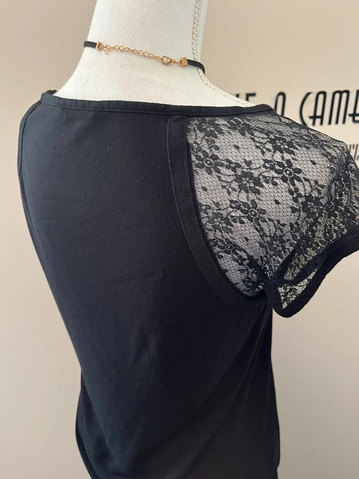 Blouse chic noire manches courtes dentelle Camaïeu taille 2 (38/40)