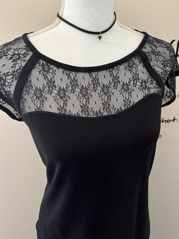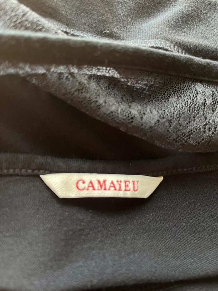 Blouse chic noire manches courtes dentelle Camaïeu taille 2 (38/40) - photo numéro 1