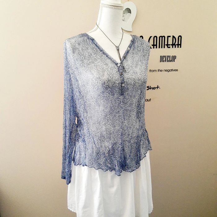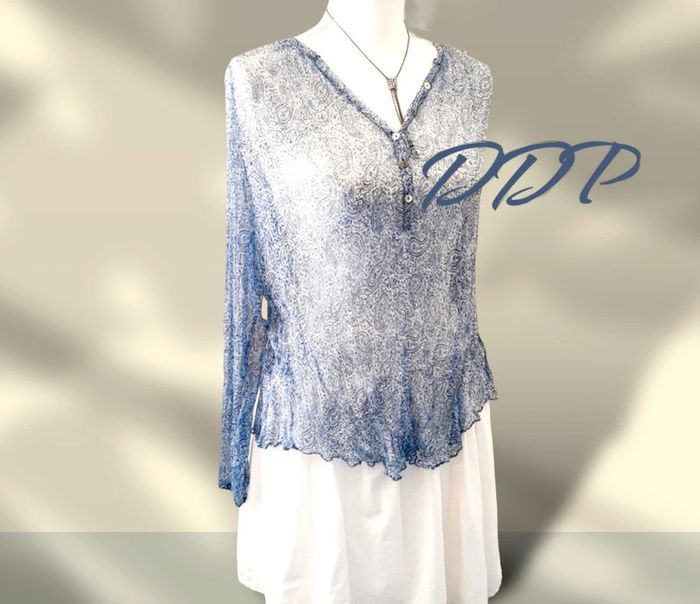 Blouse légère chic en voile bleu imprimé motifs cachemire DDP taille 1 (36/38) - photo numéro 1