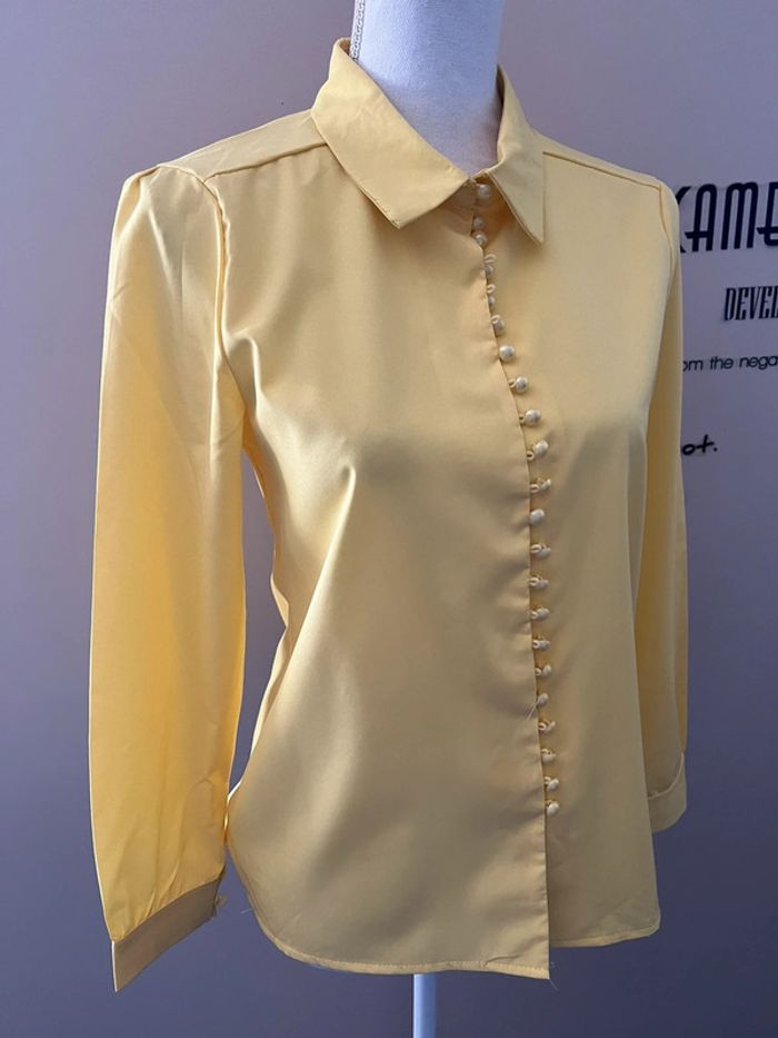 Chemise femme manches longues jaune vif polycoton taille M - photo numéro 3