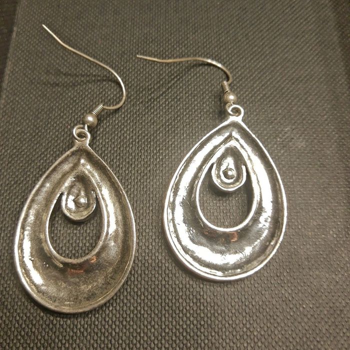 Boucles d’oreilles pendantes en métal argenté vieillit Vintage - photo numéro 1