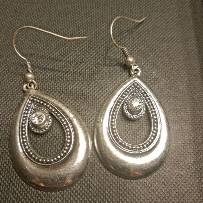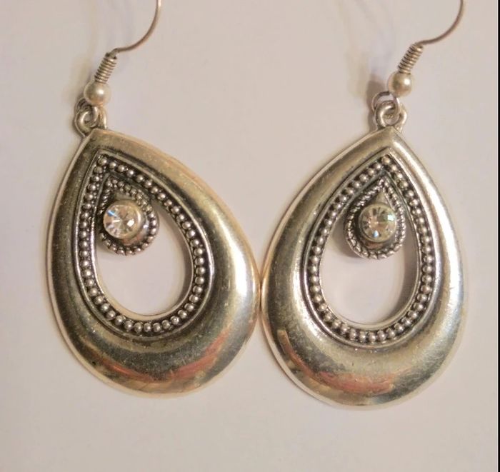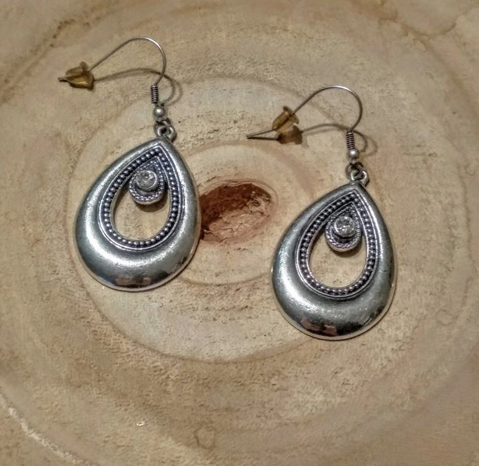 Anciennes boucles d'oreilles à trous en métal argenté vieillit vintage. En forme allongées avec un petit brillant. Bon état général. Elles ne sont pas toutes jeunes (voir photos) Parfaites pour compléter une tenue rétro chic. Pensez à grouper vos achats. Envoi rapide et soigné 👍 Mes autres bijoux #cloclodalobijoux Mes autres articles couleur argent #cloclodalosilverdream Mes autres articles de style vintage #cloclodalovintagestyle CONDITIONS DE VENTE N'hésitez pas à poser vos questions avant achat car je réponds volontiers et je suis très disponible mais je n'accepte pas les retours ensuite sauf erreur de ma part bien sûr ⚠️ Pensez aussi à faire des lots pour économiser les fdp 💡 Je suis ouverte aux négociations raisonnables si demandées avec politesse pour l'achat de plusieurs articles seulement. Bon shopping à tous 🤗 #bijoux #bouclesdoreilles #pendants #bijouxargent #bijouxneuf #bijouxargentés #bouclesdoreillespendante #martelées #bijouxvintage #bouclesvintages #argentmartelé #bouclesdoreillesneuves #pompons #pampilles #pierres #pompon #bouclesdoreillesplaquéor #faitmain #idéecadeau #idéecadeaufemme #idéecadeaugirly #anneaux #anneauxstrass #anneauxargenté #anneauxbrillants #martelé #martelées #blanc #blancnacré #perlesblanches #perlesnacrées #strass #brillants #fantaisie