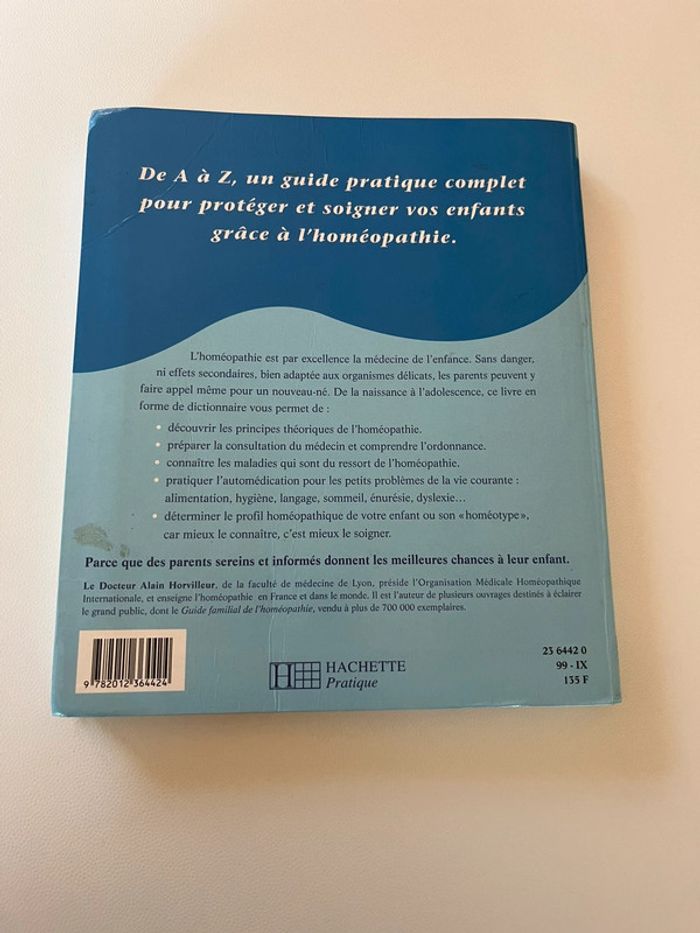 De A à Z, un guide pratique complet pour protéger et soigner vos enfants grâce à l'homéopathie. L'homéopathie est par excellence la médecine de l'enfance. Sans danger. ni effets secondaires, bien adaptée aux organismes délicats, les parents peuvent y faire appel même pour un nouveau-néDe la naissance à l'adolescence, ce livre en forme de dictionnaire vous permet de: -découvrir les principes théoriques de l'homéopathie. -préparer la consultation du médecin et comprendre l'ordonnance. -connaître les maladies qui sont du ressort de l'homéopathie. -pratiquer l'automédication pour les petits problèmes de la vie courante: alimentation, hygiène, langage, sommeil, énurésie, dyslexie... -déterminer le profil homéopathique de votre enfant ou son «homéotype», car mieux le connaître, c'est mieux le soigner. Livre grand format d’environ 250 pages beaucoup utilisé et manipulé. Donc des défauts, pliures et taches mais complet . Pensez à grouper vos achats livres : toute l’année pour 10 livres achetés c’est 50% de réduction 🎁 Beaucoup de livres cuisine, santé, bien-être, minceur et régimes alimentaires, médecines douces ou naturelles, quelques romans et livres enfants également dans mon dressing 👌 Mes autres livres 📚 #cloclodalolivres Mes articles beauté,santé ou bio #cloclodalobeauté Articles enfants #cloclodaloenfant #livresanté #santebienetre #plantes #plantesmedicinales #santenaturelle #huilleessentielle #plantes #nature #bienêtre #sante #angoisses #douleurs #maladies #autoguerison #medecinealternative #medecinedouce #médecine #maladiesautoimmunes #santé #santebienetre #santenaturelle #medecinealternative #médecine #medecinedouce #medecinenaturelle #homeopathie #livrehomeopathie #livrehomeopathieenfant #douleur #antidouleur #soigner #livresanté