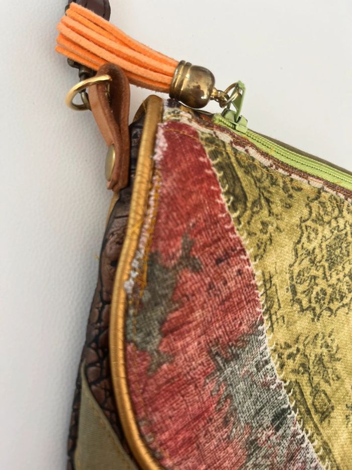 Joli petit sac bandoulière moderne fait main. Patchwork dans les marron, vert , rose etc . Multi matière Poche zippée intérieure (manque la tirette). Hauteur réglable et bandoulière amovible.Très pratique. Dimensions exactes en photo. Fais main donc quelques petits défauts de piquage ( voir 3 dernières photos pour les défauts) Sinon il est très beau Envoi rapide et soigné 👍 Mes autres sacs #cloclodalobag Mes autres articles neufs ou idée cadeau #cloclodaloneuf Mes autres articles beige, camel, marron #cloclodalobrowndream Multicolores #cloclodalocolorfuldream Mes autres accessoires #cloclodaloaccessoires CONDITIONS DE VENTE N'hésitez pas à poser vos questions avant achat car je réponds volontiers et je suis très disponible mais je n'accepte pas les retours ensuite sauf erreur de ma part bien sûr ⚠️ Pensez aussi à faire des lots pour économiser les fdp 💡 Je suis ouverte aux négociations raisonnables si demandées avec politesse pour l'achat de plusieurs articles seulement. Bon shopping à tous 🤗 #sacbandoulière #sacbandoulièremulticolore #sacbandoulierecuir #camel #sacpatchwork #sacbandoulieremarron #sacmarron #patchwork #petitsac #petitsacbandouilère #cadeauutile #accessoiremulticolore #idéecadeau #idéecadeauadolescente #cuirgrainé #idéecadeaufemme #faitmain #accessoirefaitmain #pochettepatchwork #idéecadeaugirly #idéecadeaucopine #ideecadeauamie #idéecadeaumaman #ideecadeaumamie #vintedgift #idéecadeauaccesoires #idéecadeaupochette #idéecadeausac #idéecadeaumarron #bandoulière #bandoulièreréglable #gift #vintedgift #womangift #bag #womanbaggift