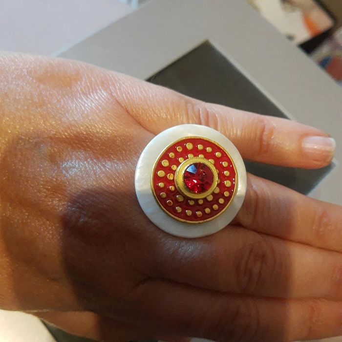 Bague originale et assez imposante de forme ronde . Style baroque fantaisie. Disque blanc, disque rouge et or, surmonté d'un gros cabochon rouge serti doré Monture acier Neuve étiquetée bijoutier taille 18 Livraison rapide et soignée 👍 Mes autres articles neufs #cloclodaloneuf Mes autres bijoux #cloclodalobijoux Mes autres articles rouge #cloclodaloreddream Mes autres articles or #cloclodalogolddream CONDITIONS DE VENTE N'hésitez pas à poser vos questions avant achat car je réponds volontiers et je suis très disponible mais je n'accepte pas les retours ensuite sauf erreur de ma part bien sûr ⚠️ Pensez aussi à faire des lots pour économiser les fdp et gagner des réductions intéressantes en période promo 💡 Je suis ouverte aux négociations raisonnables demandées avec politesse pour les lots de plusieurs articles seulement. Bon shopping à tous 🤗 #bagueelegante #grossebague18 #argent925 #bagueneuveargent925 #bagueneuvegrenat #bagueneuvezircon #bagueneuvepierres #bagueneuve18 #bague18 #baguegrenat #baguerouge #bijouxrouge #bijouxgrenat #bagueneuve #bijouxneuf #gothique #grenat #bagueargent #baguepatinee #bagueacier #acier #stainless #stainlesssteel #bijouterie #acierinoxydable #bijouxacier #bagueacier #alliance #alliancezirconium #zirconium #alliancedorée #baguedorée #bijouxargent #bagueneuve #allianceneuve #baguefantaisie #bagueargentée #bagueclasse #idéecadeaufemme #baguefantaisie18 #grossebague #baguebrillante #bijouxneufétiquetés #bagueneuveétiquetée #idéecadeau #idéecadeauneufavecetiquette #ideecadeaubijoux #idéecadeaufemme #ideecadeaumaman #idéecadeauluxe #idéecadeauchérie #idéecadeaumamie #idéecadeauamie #idéecadeaucopine #idéecadeaurouge #idéecadeaubague #idéecadeauneufavecetiquette #baroque #styleboheme #stylebaroque #stylevintage #styleretrochic #rentrée