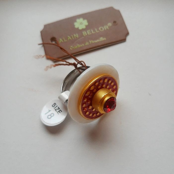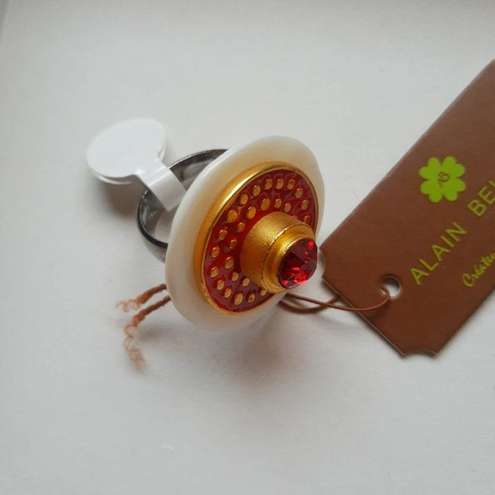 Grosse bague originale fantaisie rouge et or neuve avec étiquette bijouterie