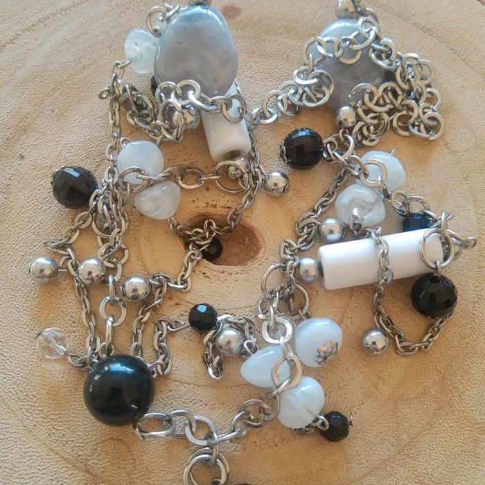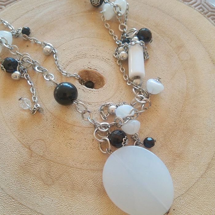 Long sautoir fantaisie fantaisie blanc noir argent - photo numéro 1