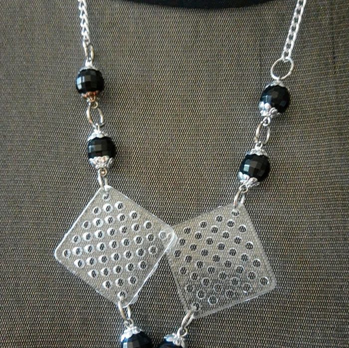 Long sautoir fantaisie noir et argent - photo numéro 1