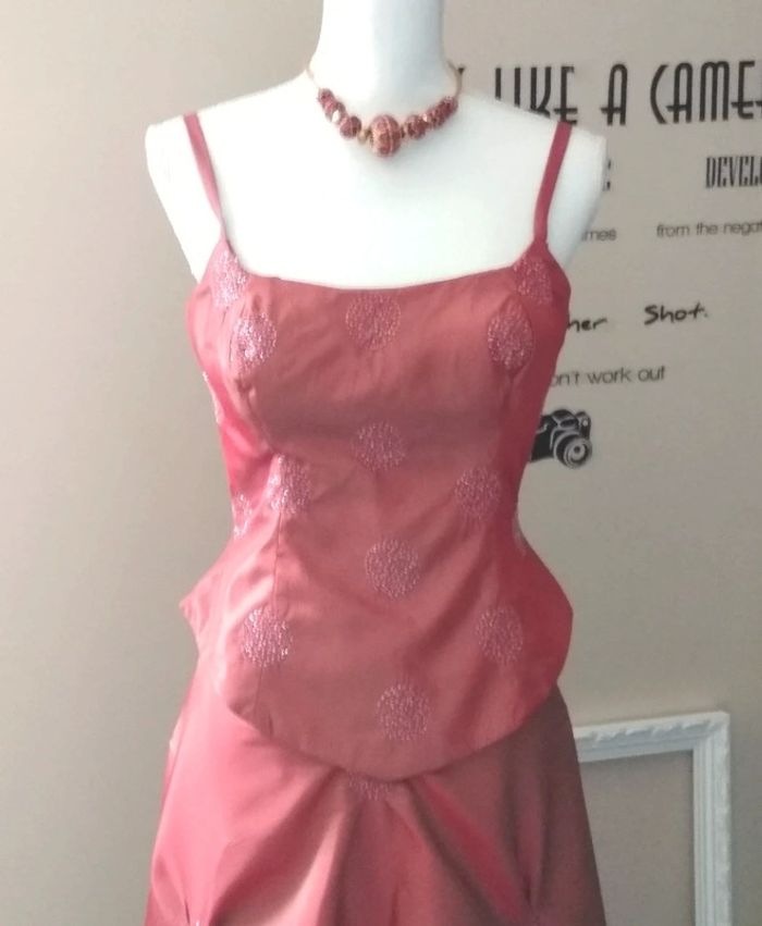Ensemble de cérémonie de qualité Mis une seule fois donc comme neuf Composé d'un top à Bretelles avec bonnets intégrés, joliment ceintré à la taille, Et d'une jupe très longue forme trapèze, très évasée Affine la silhouette Tissu moiré rouge reflets Gold très lumineux Elle est vraiment magnifique comme neuve, achetée dans un magasin local de mariage. Super classe pour un mariage ou une autre soirée de gala, bal, shooting photo Pas de taille indiquée N'hésitez pas à me demander des mesures précises. Portée ici par mon mannequin en 38- 40 sans problème 😉 Peut se porter avec une étole comme sur le modèle ou seul (si elle vous plaît je peux vous l'offrir en plus 🎁) Mes autres robes 👗 #cloclodalodress Mes autres articles rouges ou bordeaux #cloclodaloreddream Mes autres tenues chics #cloclodalochic Mes autres articles en M #cloclodalo38 Mes autres articles en L #cloclodalo40 CONDITIONS DE VENTE N'hésitez pas à poser vos questions avant achat car je réponds volontiers et je suis très disponible mais je n'accepte pas les retours ensuite sauf erreur de ma part bien sûr ⚠️ #tenuedesoiree #soiréerouge #roberouge #tenuerouge #ensemblerouge #tenuelongue #tenueexceptionelle #robedeprincesse #robeprincesse #princesse #rouheetor #robedesoirée #robechic #robe3840 #robedeceremonie #mariage #robeclasse #robe4042 #perles #robeglamour #robeglamchic #précieux #robeprincesse #ceremonie #neuf #weddind #mariage3840 #robeperlee #soiree3840 #ceremonie3840 #robedesoirée #robechic #mariagechic #robe38 #robedeceremonie #robedebal #robebal #shooting #shootingphoto #robedesoirée3840 #robegala #roberouge #robelongue #robetémoin #mariageoriental #robedemoiselledhonneur #tenuedebal #tenuedegala #tenuedecérémonie #robeorientale #robeorientale38 #tenueorientale38 #jupelongue38 #bustier38 #étolerouge #weddingdress #weddingguest #weddingsuit #partydress #reddress