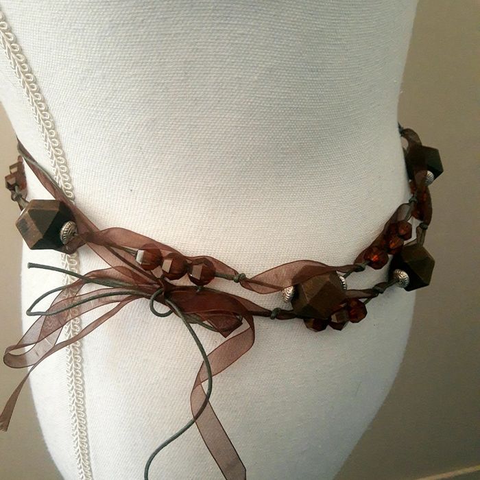 Très jolie Ceinture fantaisie, originale et féminine à porter nouée sur un vêtement Tons marron Rubans, perles de différentes formes, matière, taille... Assez longue pour faire deux fois le tour du mannequin Envoi rapide et soigné 👍 Mes autres accessoires #cloclodaloaccessoires Mes autres articles beige, camel, marron.. #cloclodalobrowndream #ceinturevintage #ceintureperles #ceintureànouer #ceintureruban #ceinturebijoux #ceinturefantaisie #ceinturemultitailles #accessoiresmarron #accessoiresfantaisie #accessoiresvintage #ceintureperlesbois #ceinturemarron #ceinturelongue