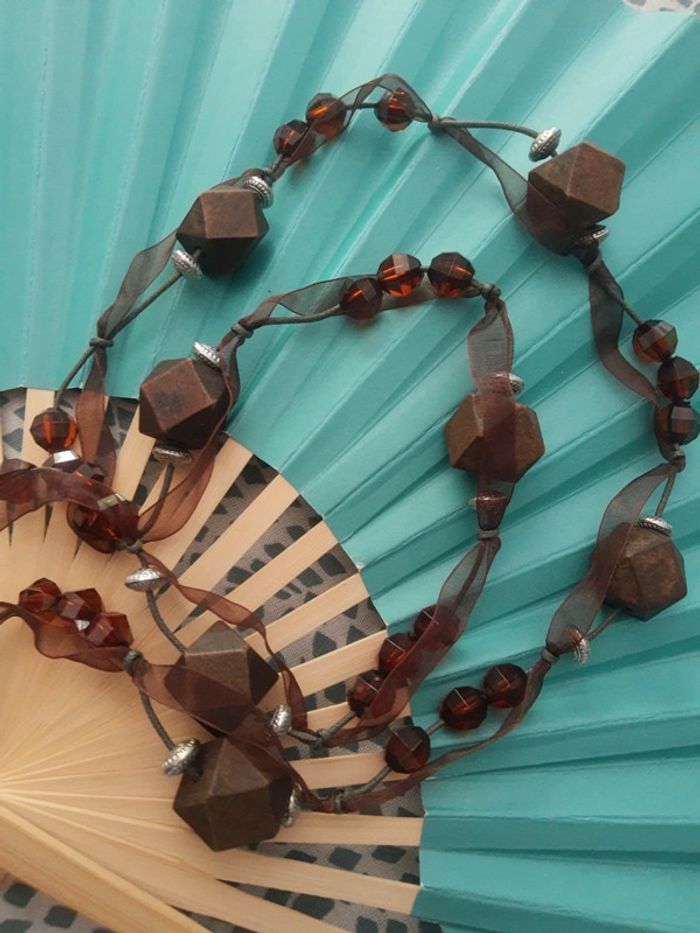 Ceinture à nouer fantaisie bijoux perles bois et ruban - photo numéro 3