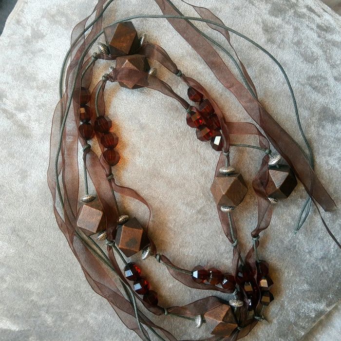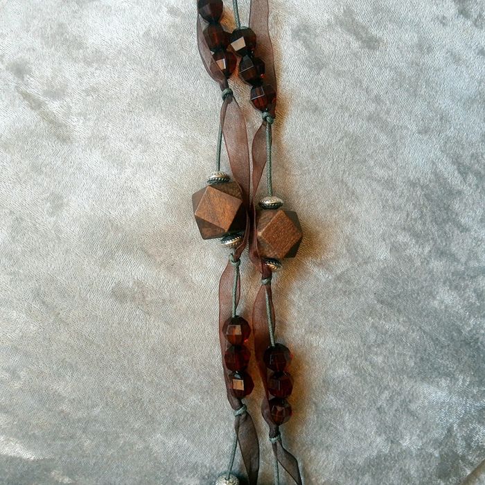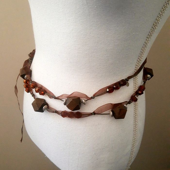 Ceinture à nouer fantaisie bijoux perles bois et ruban - photo numéro 1