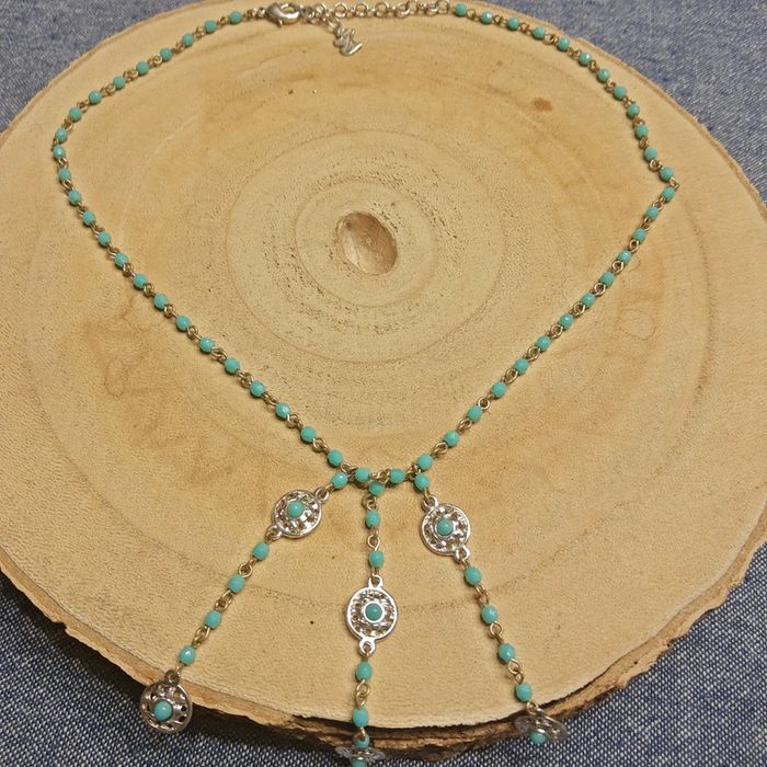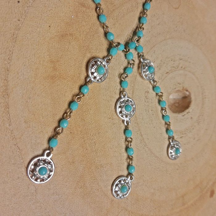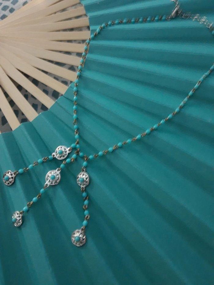 Collier Agatha perles et pampilles turquoises et argent - photo numéro 1