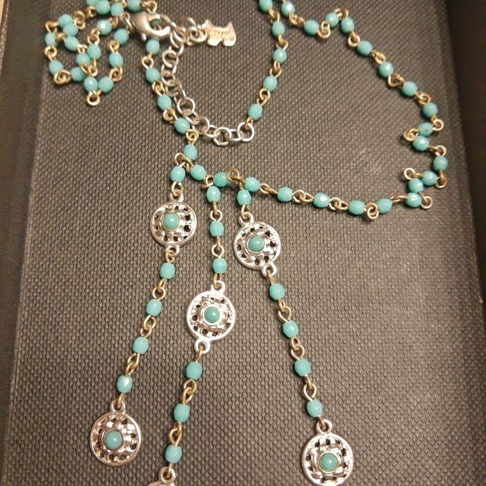 Collier fantaisie Agatha perles et pampilles couleur turquoises et argenté. Le métal argenté a perdu toutefois de son eclat par rapport au neuf. Bel effet porté sur décolleté 👌 N'hésitez pas à faire des lots pour économiser les fdp. Envoi rapide et soigné 👍 Mes autres bijoux #cloclodalobijoux Mes autres articles bleu #cloclodalobluedream Mes autres articles couleur argent #cloclodalosilverdream CONDITIONS DE VENTE N'hésitez pas à poser vos questions avant achat car je réponds volontiers et je suis très disponible mais je n'accepte pas les retours ensuite sauf erreur de ma part bien sûr ⚠️ Pensez aussi à faire des lots pour économiser les fdp 💡. Je suis ouverte aux négociations raisonnables si demandées avec politesse pour les lots de plusieurs articles seulement. Bon shopping à tous 🤗 #bijouxfantaisie #bijouxboheme #collier #collierbleu #collierplastron #rasdecou #collieroriginal #collierasymétrique #choker #chokernecklace #bijouxagatha #agathaparis #collierturquoise #collieragatha #collierpampilles #collierfantaisie #colliervintage #rasdecou #collierbleu #bijouxbleu #bijouxoriginaux #bijouxcreateur #collierargent #chokerstyle #bleuroi #bleumarine #plastron #asymétrique #groscollier #grosbijoux #étoilesargentées #idéecadeau #idéecadeaufemme #idéecadeaugirly #idéecadeaucopine #idéecadeaumaman #ideecadeaumamie #ideecadeauamoureuse #idéecadeauchérie #idéecadeauchic #ideecadeaubijoux #vintedgift #womangift #giftidea #gift #RentréeVinted