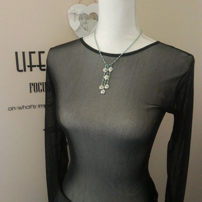 Collier Agatha perles et pampilles turquoises et argent - photo numéro 9