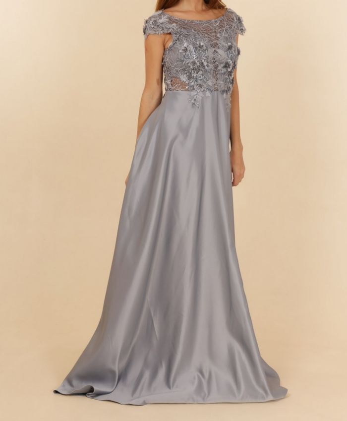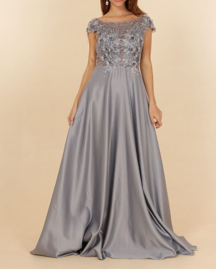 robe cérémonie dentelle et bas satiné argenté taille 36