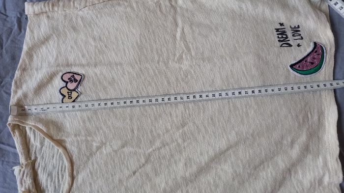 T-shirt jaune pale court Longueur 50 cm Largeur aisselles 54 cm Taille 42 #T42_imoddeco