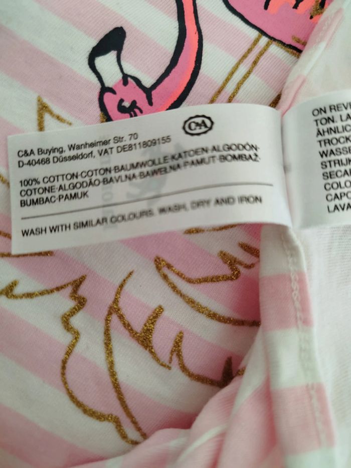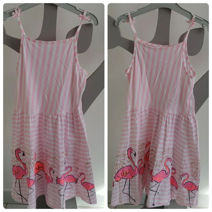 Robe à bretelles rose à rayures blanches thème flamand rose Palomino taille 10 ans - photo numéro 4