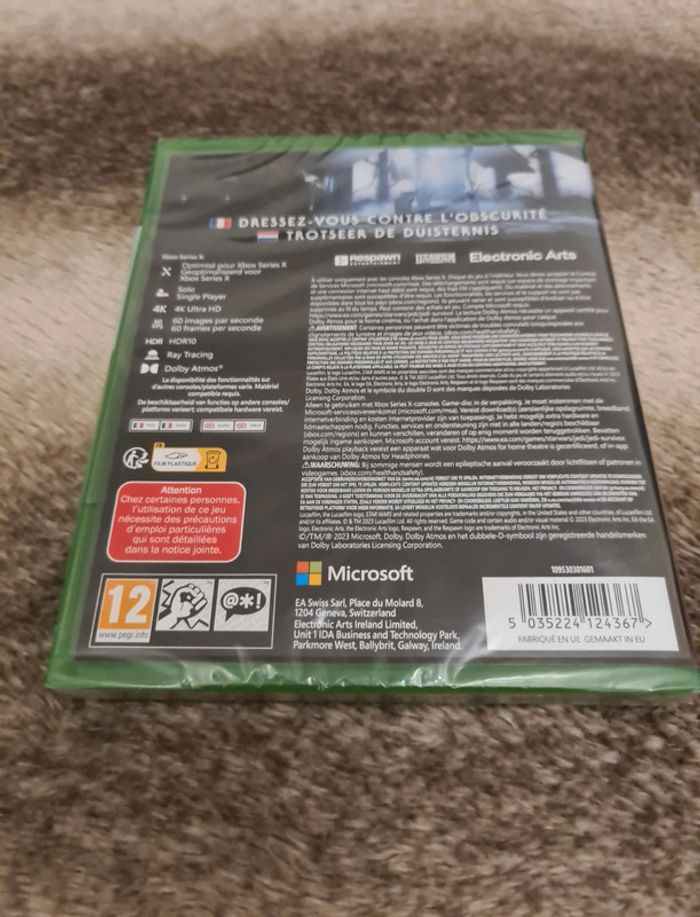 Jeu neuf sous blister Star Wars Jedi: Survivor pour Xbox série X Jeu d'action-aventure passionnant dans l'univers de Star Wars, une excellente opportunité pour les fans de la saga qui souhaitent découvrir cette nouvelle aventure palpitante. N'hésitez pas à me contacter pour toute question ou demande d'informations supplémentaires. - Titre : Star Wars Jedi: Survivor - Plateforme : Xbox série X - Genre : Action-aventure - Langue : Français - Notation PEGI : 12+ - Neuf sous blister #Teve_nais_jeux_jouets #Teve_Nais_divertissement