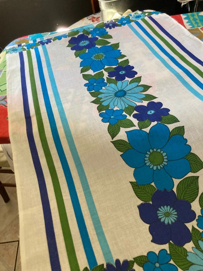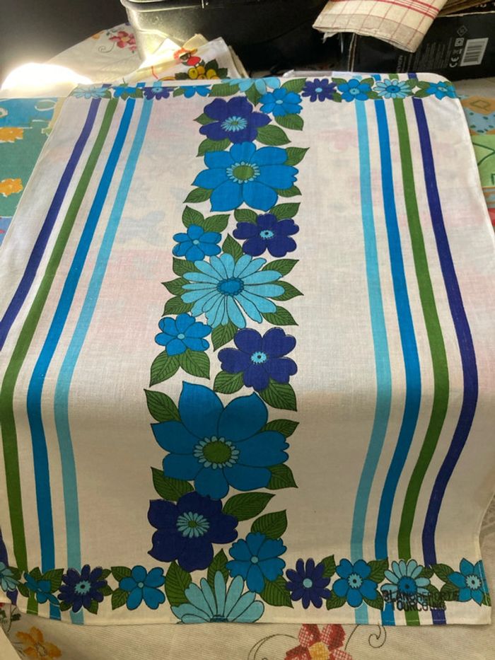 Vend torchon très bon état fleurs bleues