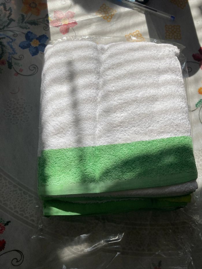 Vend ensemble serviette neuves dans leur emballage d’origine composé de 4 petites serviettes et deux gants.