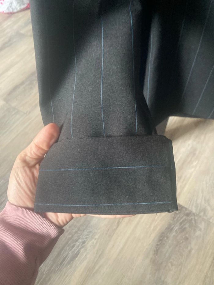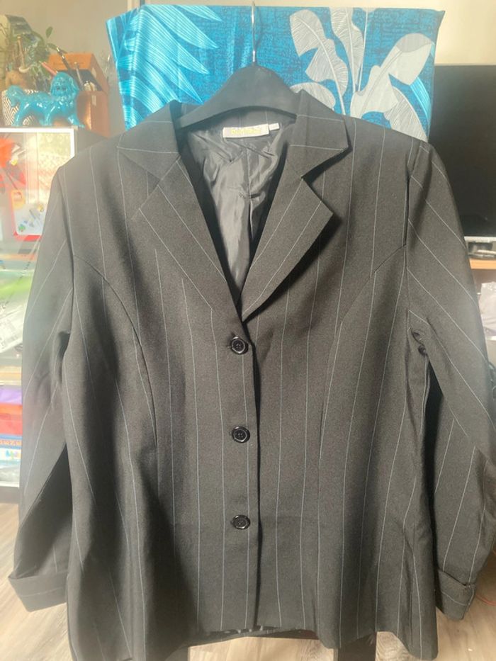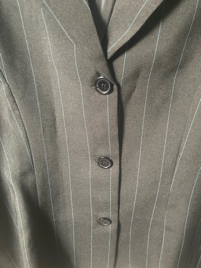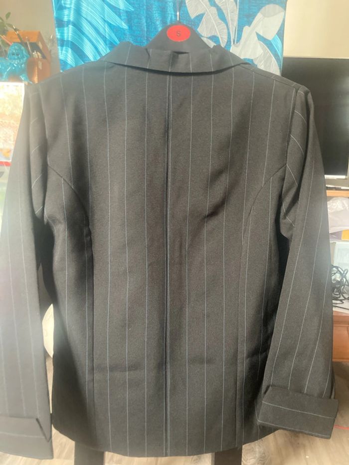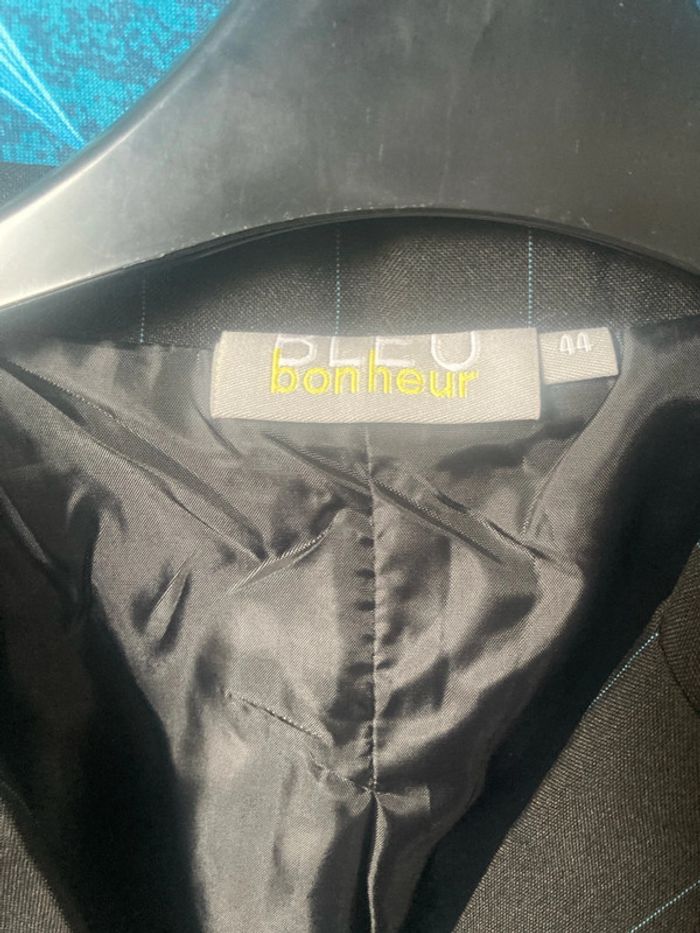 Vend blazer rayé noir rayures fines bleues taille 44 fermeture boutons marque bleu bonheur très bon état