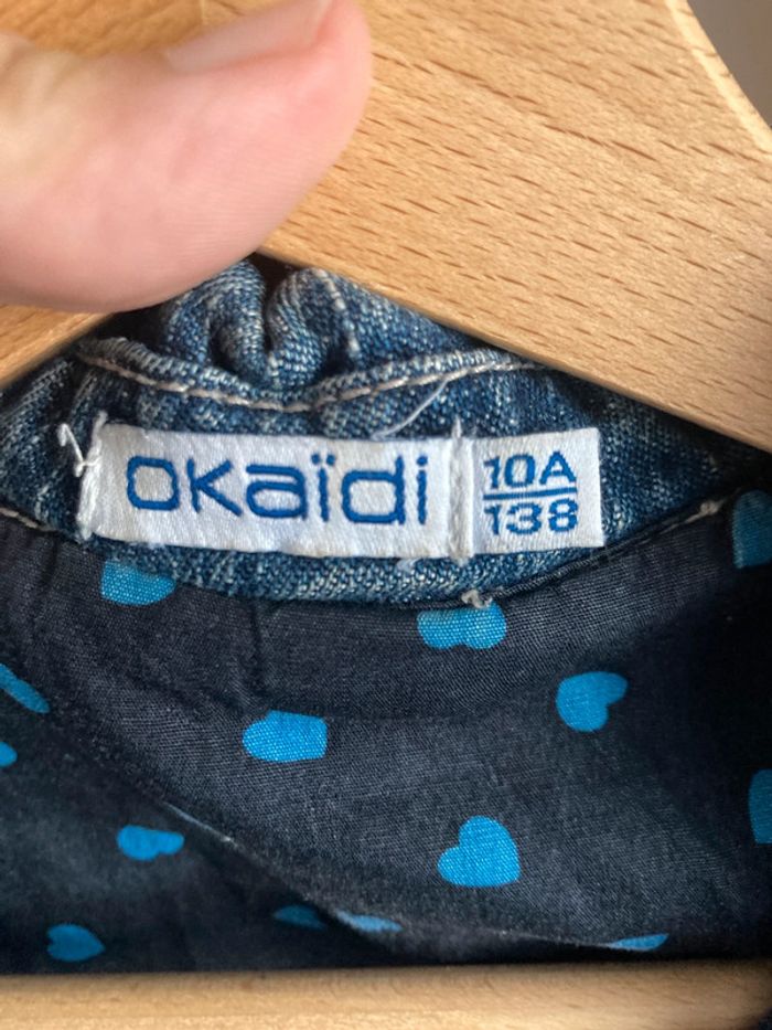 Vend veste jeans Okaïdi taille 10 ans très bon état ( manque 1 bouton fermeture) deux poches avant