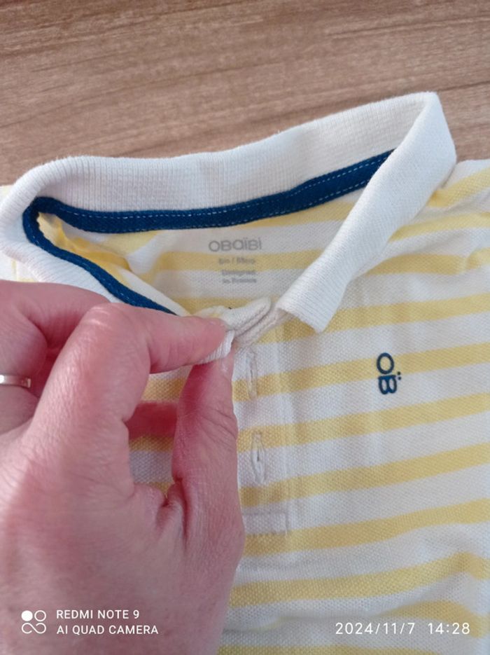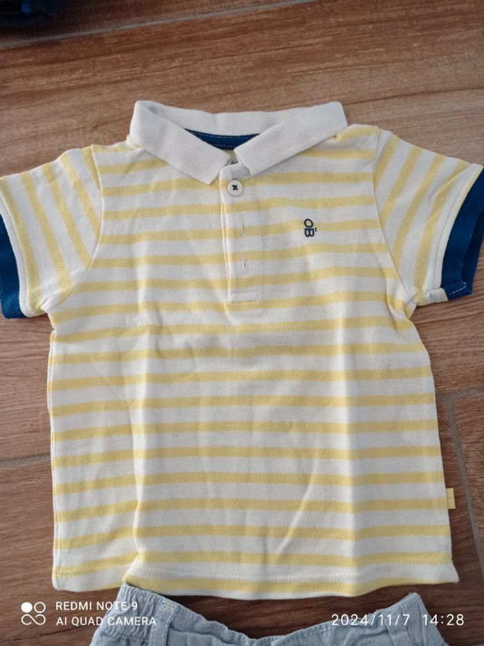 Ensemble 6 mois, short Chambray + Polo rayé blanc/jaune paille - photo numéro 7
