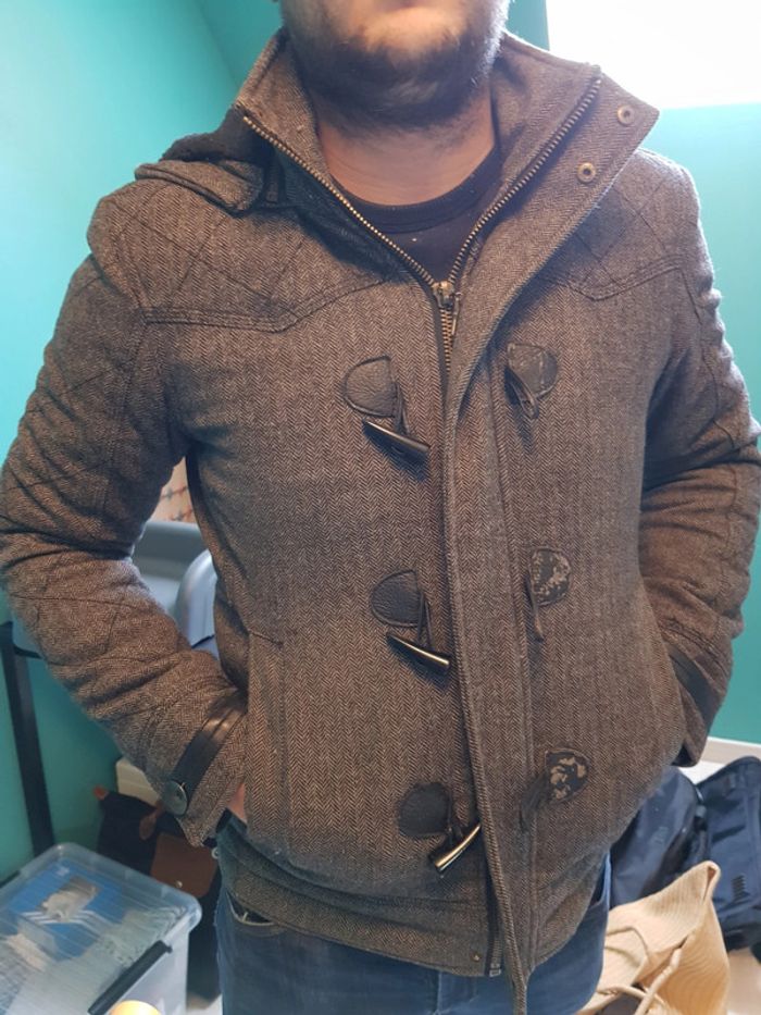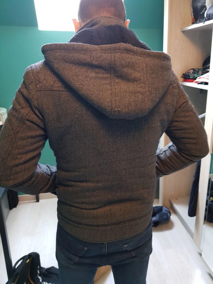 Manteau avec moumoute intérieure. Usure uniquement sur le cuir devant comme sur la photo