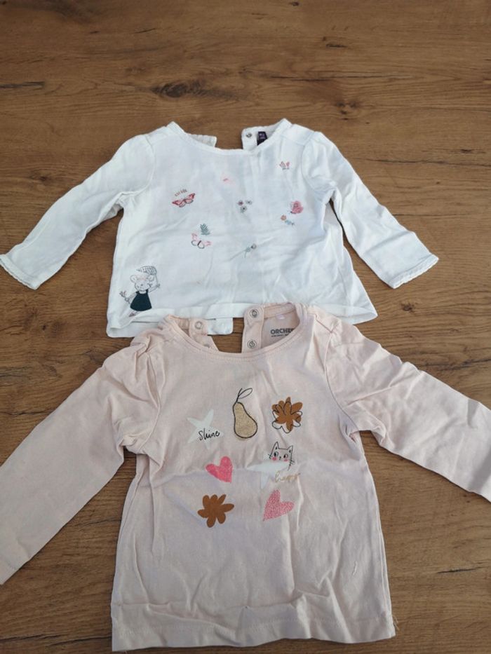 2 tee shirt manches longues 9 mois - photo numéro 1