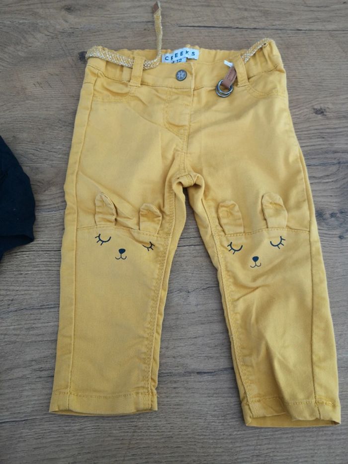 Jean mais léger et souple jaune motif petite tête 12 mois Mondial relay