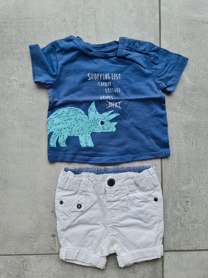 Ensemble T-shirt manches courtes et short Taille 3 mois Marque tex le t-shirt et gemo le short Très bon état #3moisgarçonbébéA