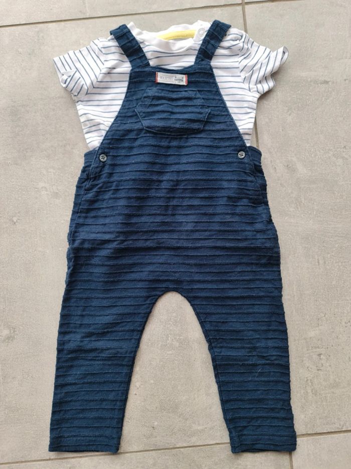 Ensemble mi saison été salopette légère et t-shirt manches courtes Taille 12 mois Marque in extenso le t-shirt et Kiabi la salopette Très bon état #12moisgarçonbébéA