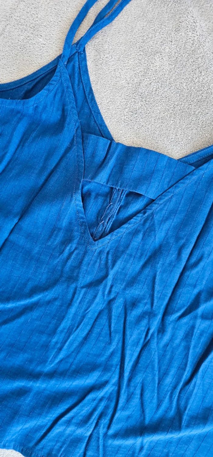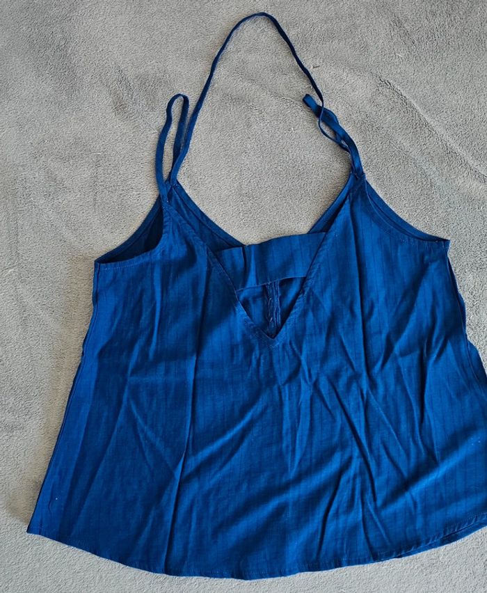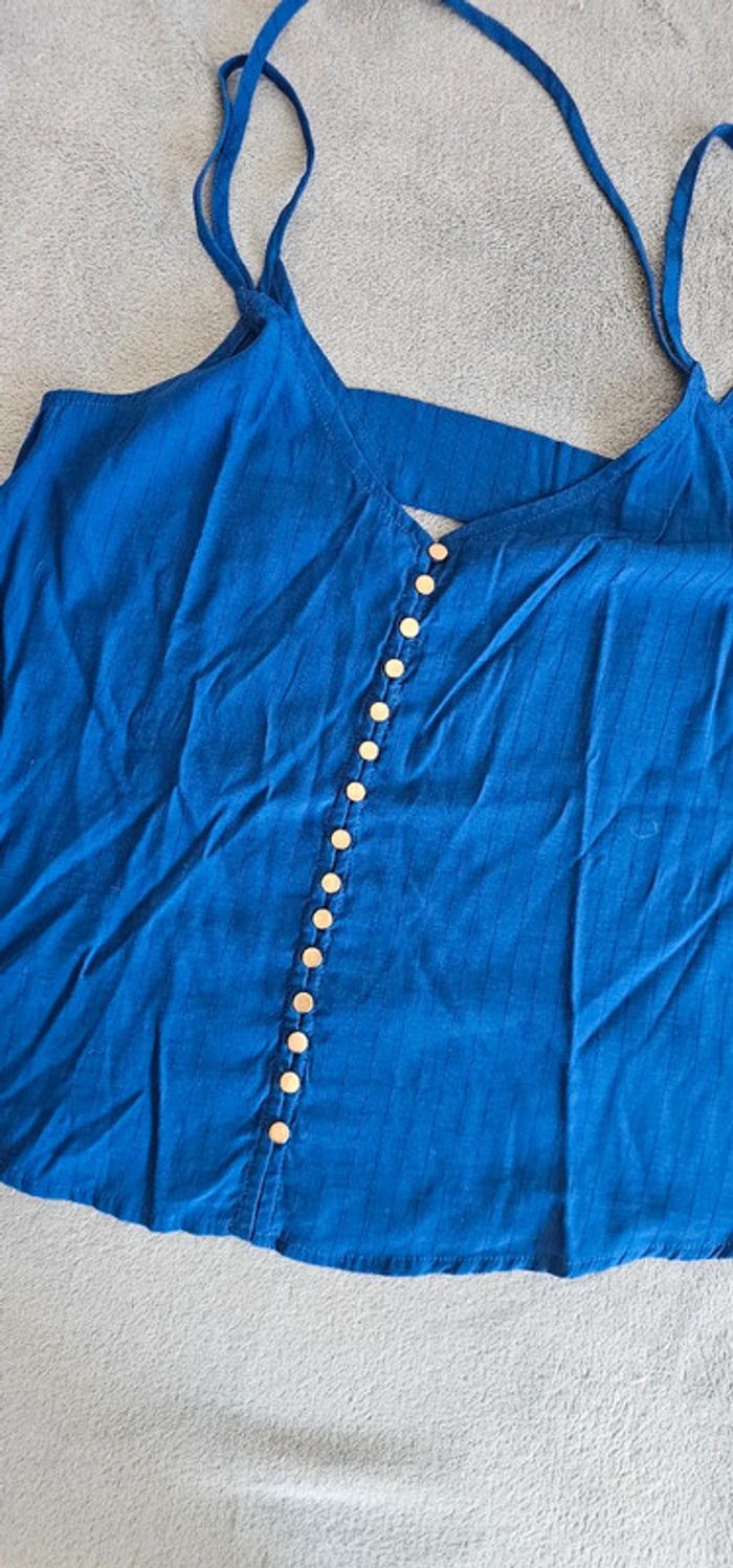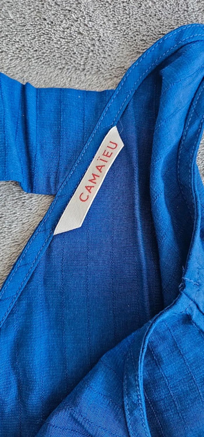 Magnifique débardeur Camaïeu bleu en bon état. Bouton sur le devant. Taille 36.