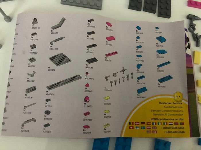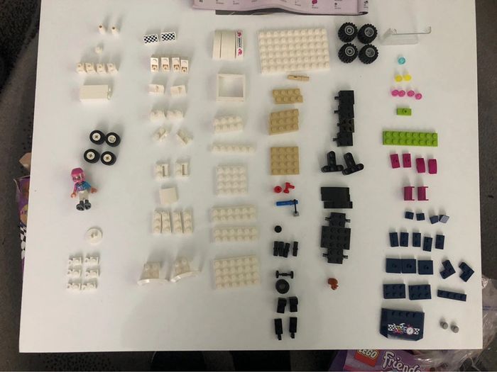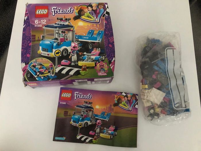 camion lego friends avec boîte et notice (4e photo : pièces oubliées sur la première photo de pièces) complet (il manque juste la sirène du camion) Boîte abîmée au dos Dernière photo : pièces supplémentaires