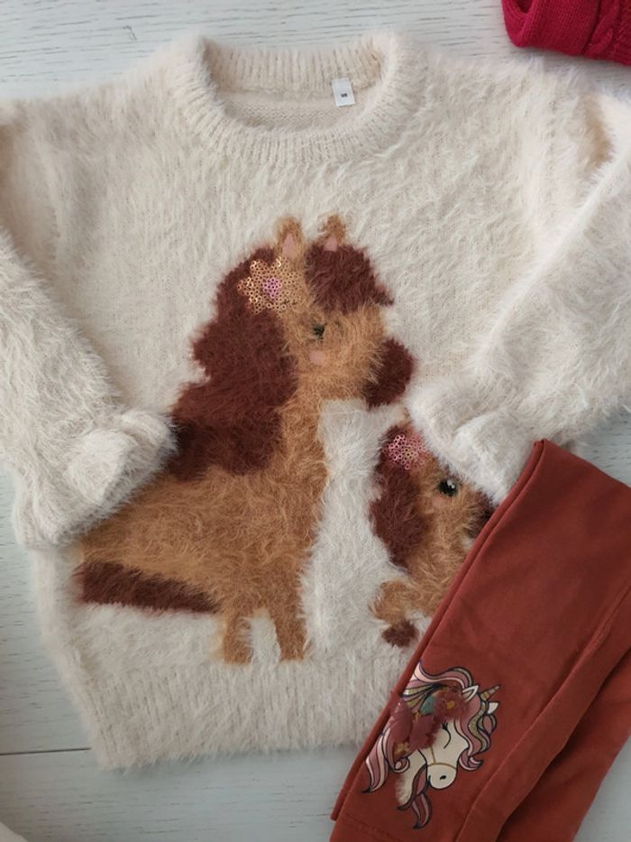 Pull tres doux legging fleur relief et tee shirt longue manche