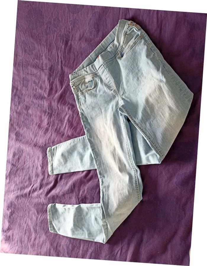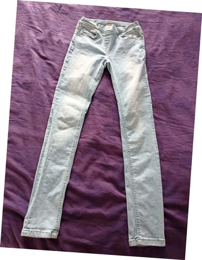 Très joli jegging bleu clair, 14 ans ou 164 cm, taille resserrable. Longueur de la jambe : 94 cm Retrouvez d'autres annonces en cliquant sur #14ansmadie57 Pensez à enlever les filtres !
