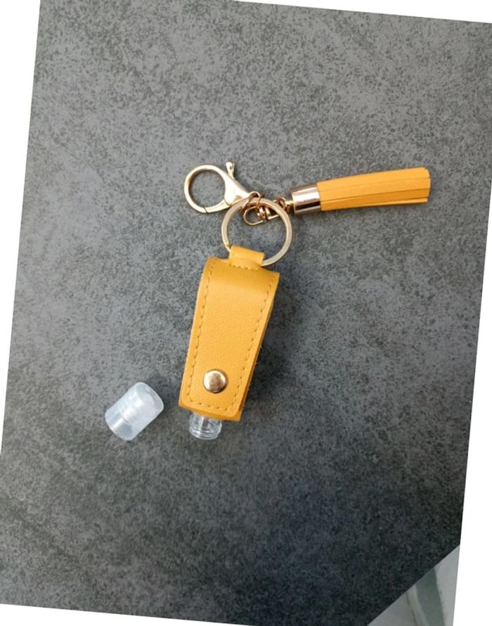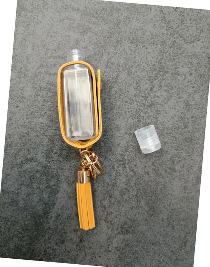 Petit flacon, idéal pour mettre le gel hydroalcoolique, qu'on peut accrocher à un sac ou à ses clés. Jamais utilisé.