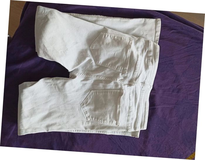 Superbe jean slim, taille haute. Bien qu'indiqué 38, ça taille petit, c'est plutôt 34-36. Les mesures sont sur les photos. 2 petites tâches à peine visibles, j'ai eu de mal à les retrouver! Voir les 2 dernières photos. Cliquez sur ces liens pour voir d'autres annonces similaires, supprimez les filtres s'il y en a! #12ansmadie57 #13ansmadie57 #14ansmadie57 #34madie57