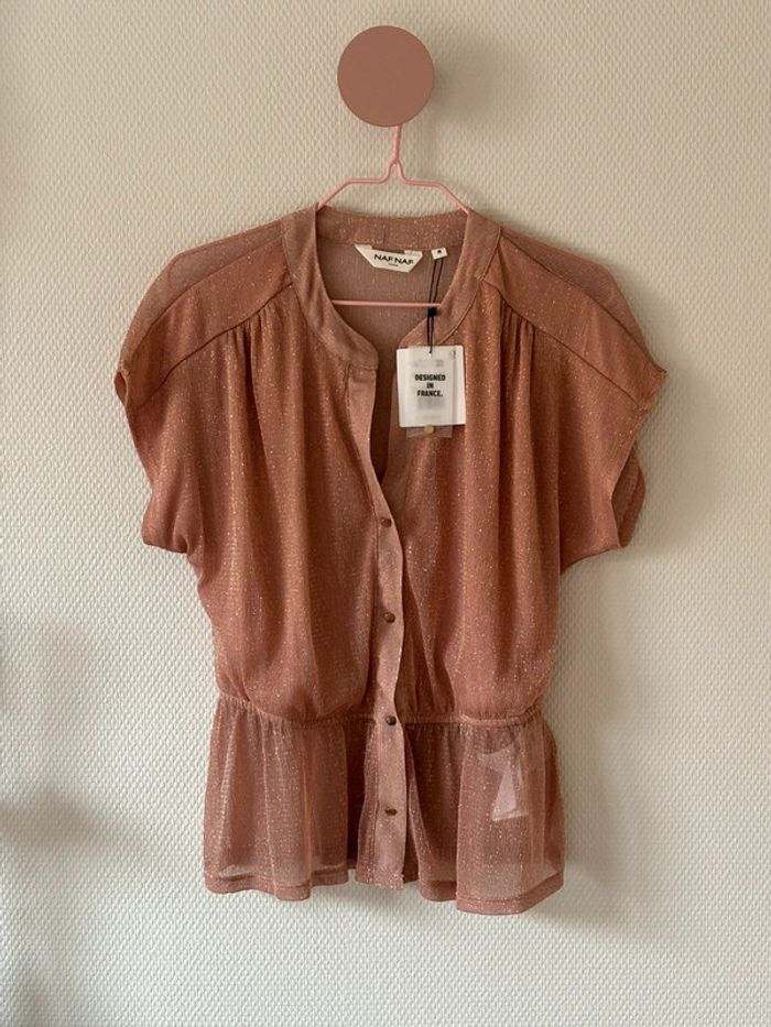 Top péplum rose poudré à paillettes dorées Naf- Naf Élastiqué à la taille Neuf Taille M
