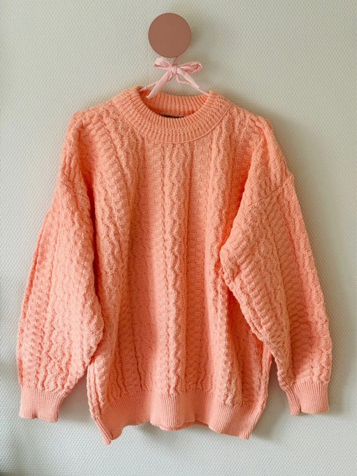 Pull 90’s en maille torsadée Coton épais de couleur rose/corail pastel Conviendra du 36 au 42 selon l’effet voulu (loose ou plus près du corps)
