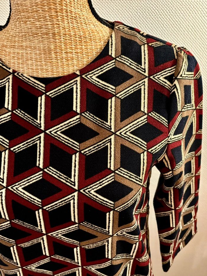 Robe de la marque See U Soon neuve et jamais portée Joli imprimé à l’esprit rétro 70’s avec fil de lurex doré Idéale avec des bottes et un gros gilet pour un look décontracté ou des escarpins pour une tenue plus habillée