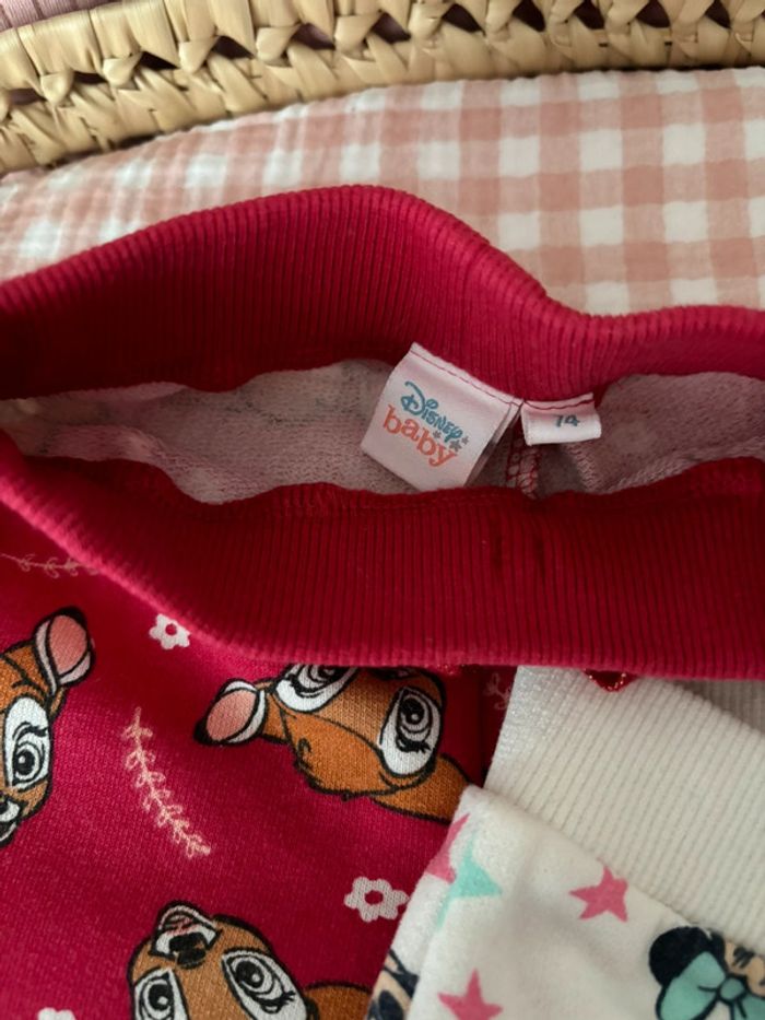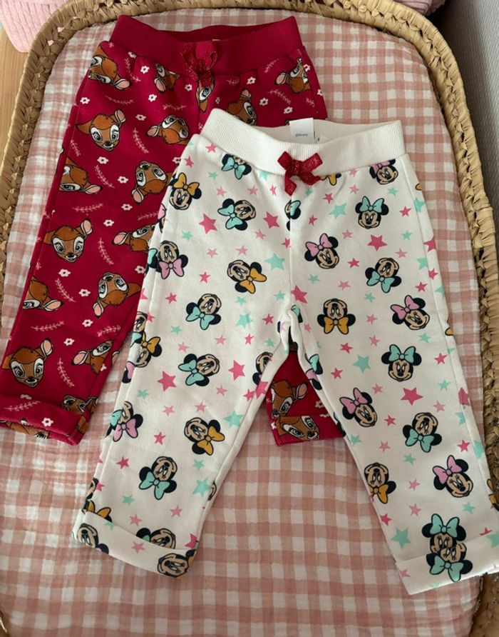 Lot de 2 pantalons Disney 1 rouge avec Bambi et 1 blanc avec Minnie Neufs