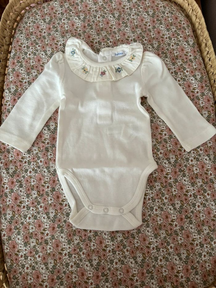 Body Bout’chou manches longues à col claudine brodé 3 mois Neuf, juste lavé